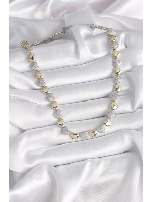 Bamido Pirinç Mix Renk Zirkon Taşlı Kalp Model Vıp Exclusive Seri Kadın Kolye - Lisinya