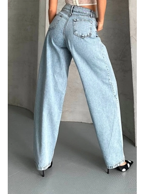 Baggy Kar Yıkama Buz Mavi Jeans Pantolon D2007