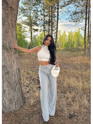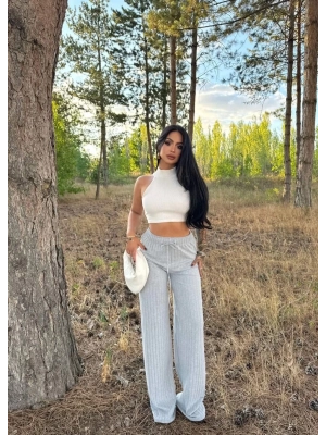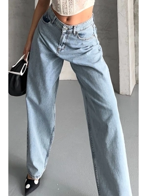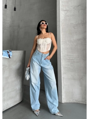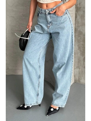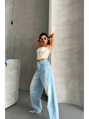 Palazzo Bıyık Kar Yıkama Buz Mavi Jeans Pantolon D2008