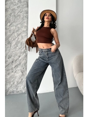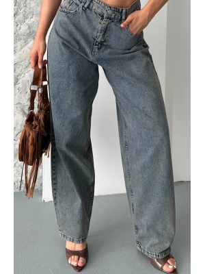 Mom Fit Enzim Taş Yıkama Jeans Pantolon Füme D2006