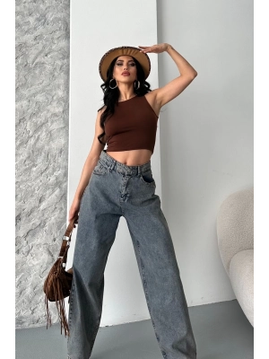 Baggy Kar Yıkama Eskitme Kahve Jeans Pantolon D2007