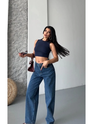 Palazzo Süper Taş Enzim Tint Yıkama Koyu Lacivert Jeans Pantolon D2008
