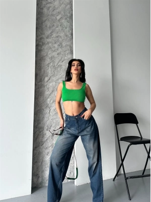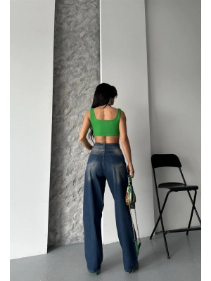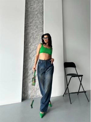 Baggy Kar Yıkama Yeşil Tint Jeans Pantolon D2007