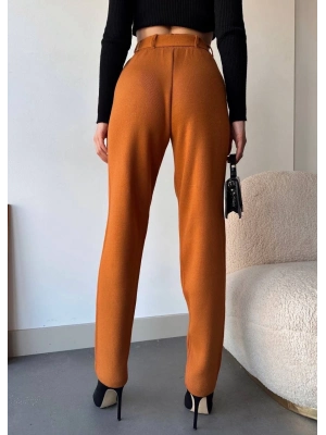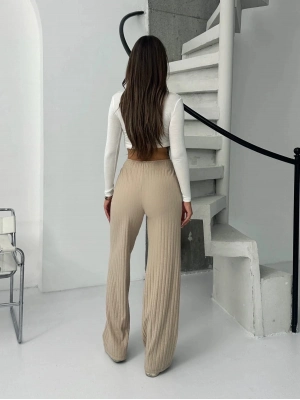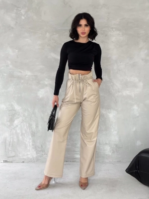 Kendinden İnce Kemerli Deri Pantolon Bej T1178
