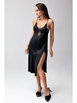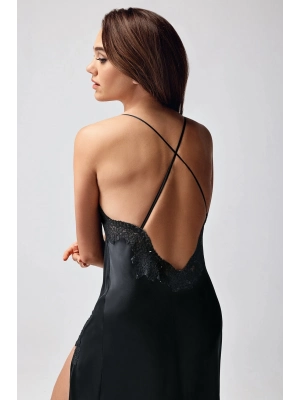 Siyah Kadife Dantelli Sabahlık & Gecelik Takım 3' Lü - 1399