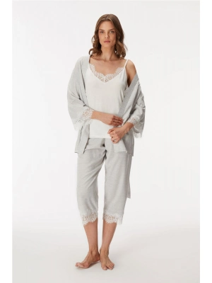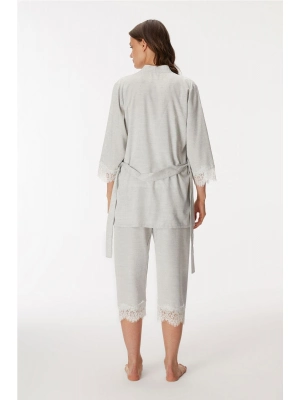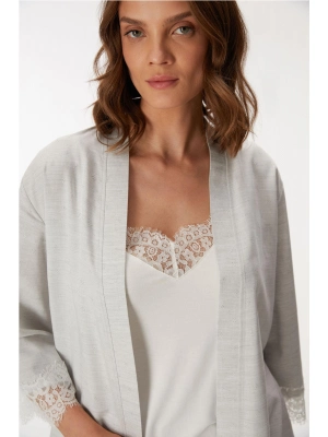 Vizon Kadife Dantelli Sabahlık & Gecelik Takım 3' Lü - 1398
