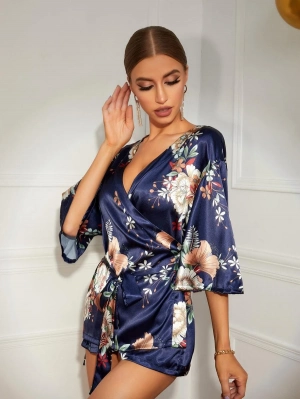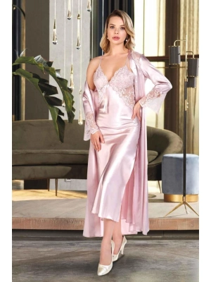 Freshness 9950-gs Saten Ortişli Gecelik Sabahlık Takım
