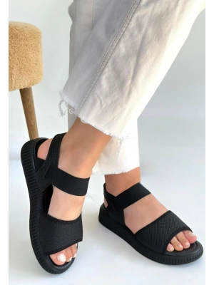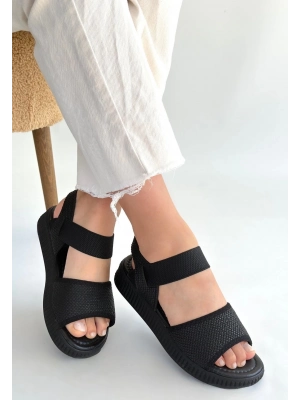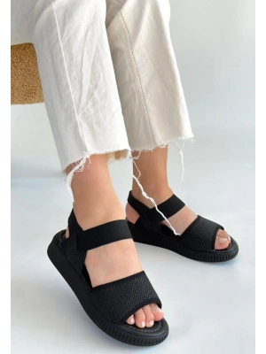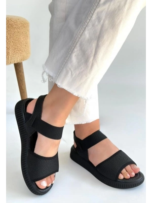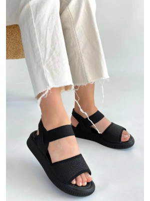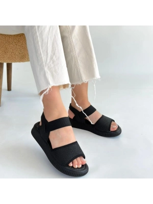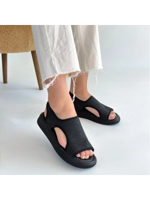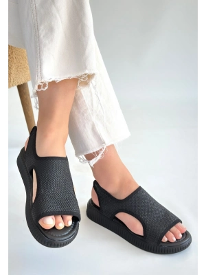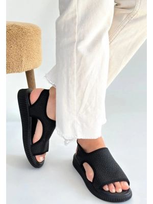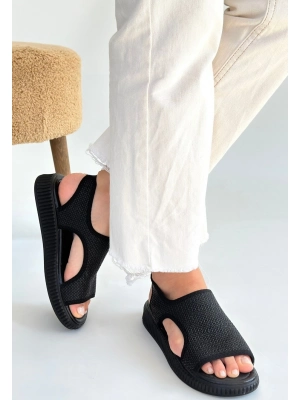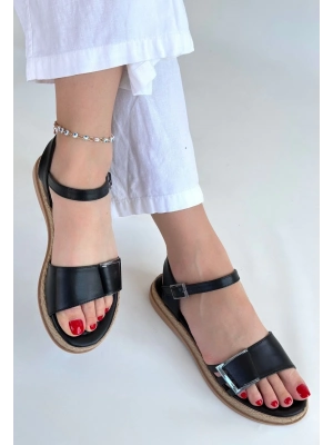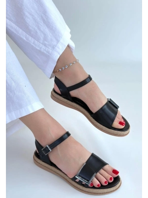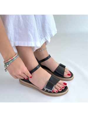 Wayi Siyah Hasır Cilt Sandalet - Bamido