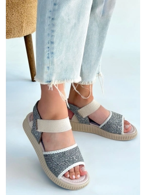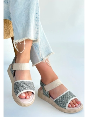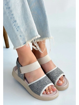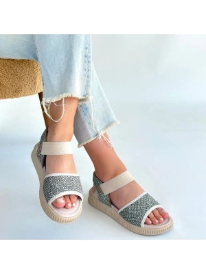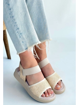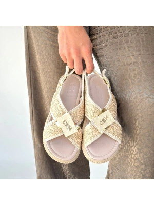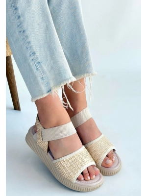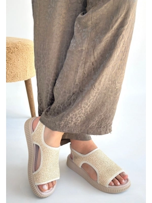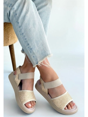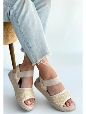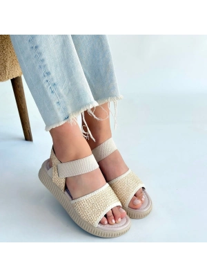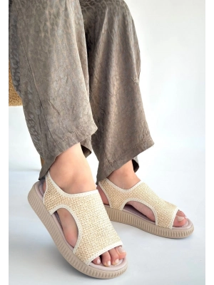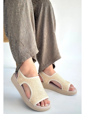 Wayi Bej Hasır Cilt Sandalet - Bamido
