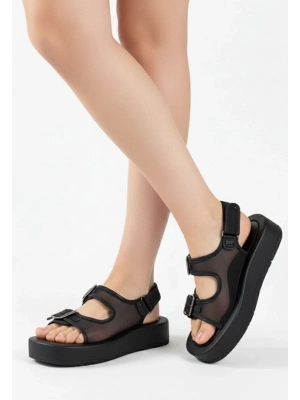 Sinna Siyah Cilt Tül Detaylı Sandalet