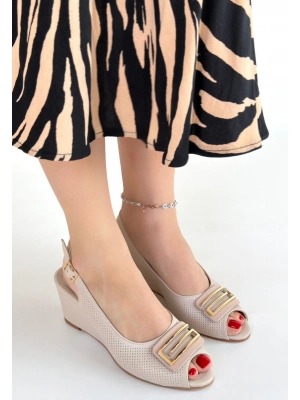 Mamba Bej Cilt Dolgu Topuk Ayakkabı - Bamido