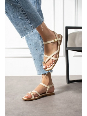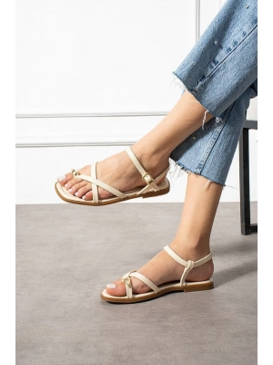 Nordi Bej Cilt Kemerli Sandalet - Bamido