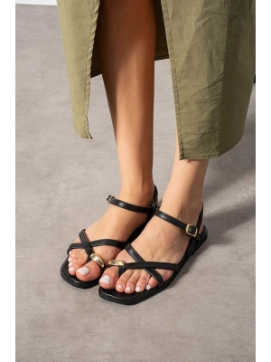 Nordi Siyah Cilt Kemerli Sandalet - Bamido