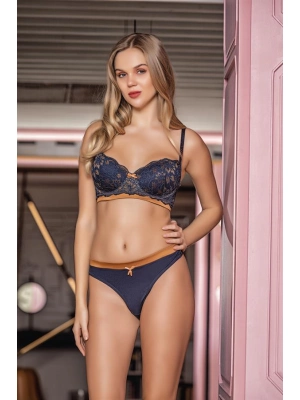 Dantelli Hafif Destekli Sütyen String Takım Lacivert (brf31692)
