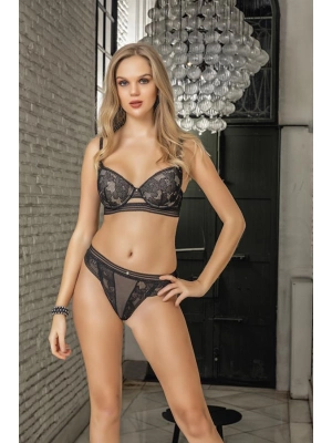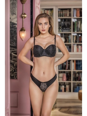 Simli Straplez Lotus Sütyen Ve Slip Külot Takım Siyah (brf31541)