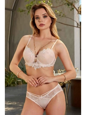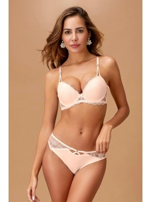 Dantelli Pudra Balenli Bralet Sütyen Takımı