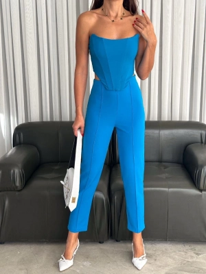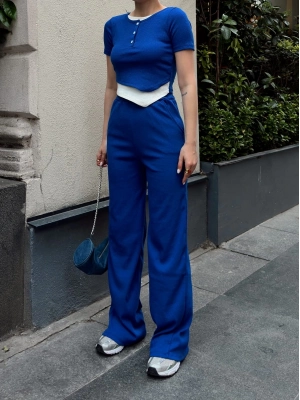 Düğme Yakalı Saks Alt Üst Takım S3943