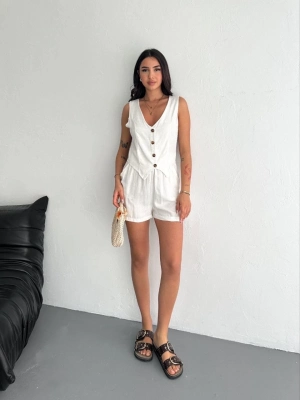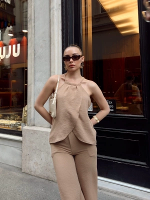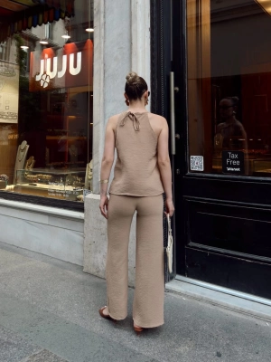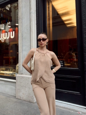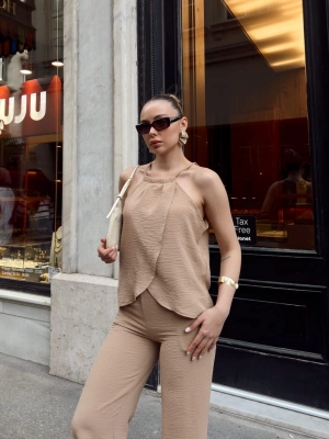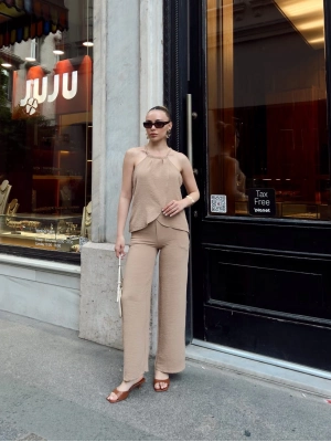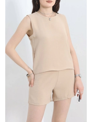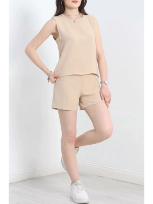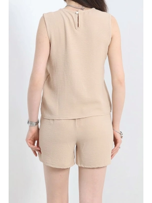 Düğme Yakalı Bej Alt Üst Takım S3943