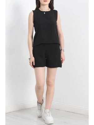 Düğme Yakalı Siyah Alt Üst Takım S3943
