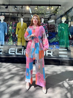 Bamido Madonna Yaka Bol Paça Pantolonlu Takım