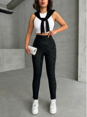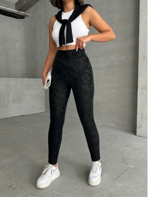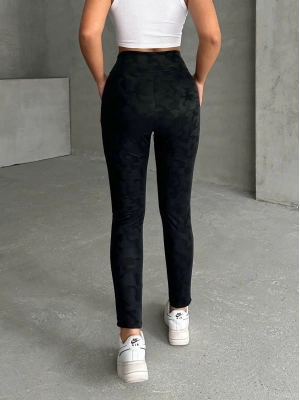 Gizli Yan Fermuarlı Bulut Desenli Tayt Siyah H248638