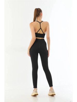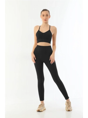Siyah Mı Emay 3921 Soft Seamless Ripli Tayt Yoga Takımı
