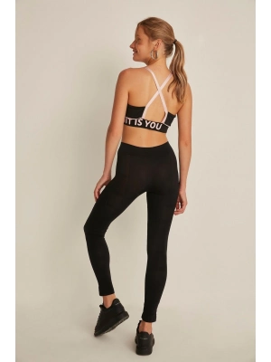 Kadın Siyah Termal Tayt İçi Şardonlu