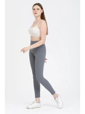 Beruflic Gri Yüksek Bel Fitilli Tayt 0608