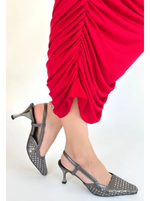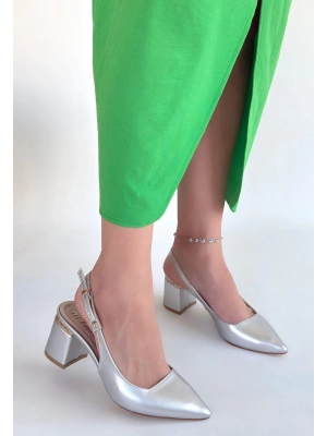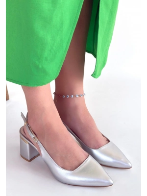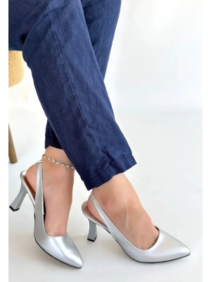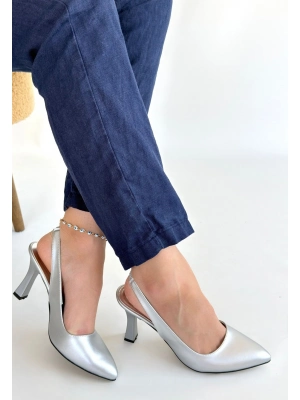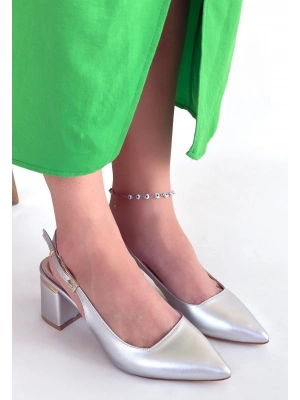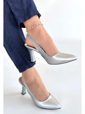 Buant Gümüş Cilt Topuklu Ayakkabı