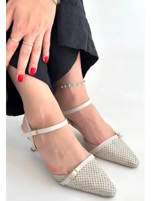 Lanna Bej Cilt Topuklu Ayakkabı - Bamido
