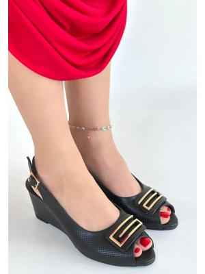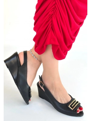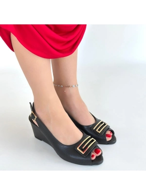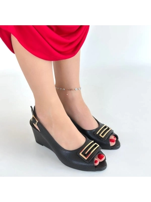 Mamba Siyah Cilt Dolgu Topuk Ayakkabı - Bamido