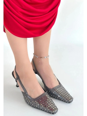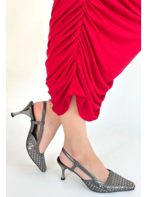 Feey Gümüş Cilt Topuklu Ayakkabı