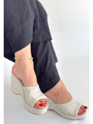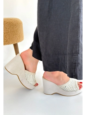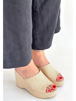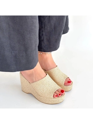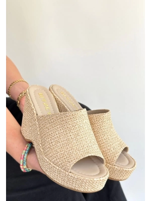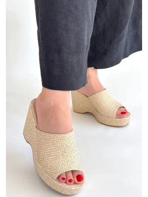 Tlay Bej Hasır Dokumalı Dolgu Topuk Terlik