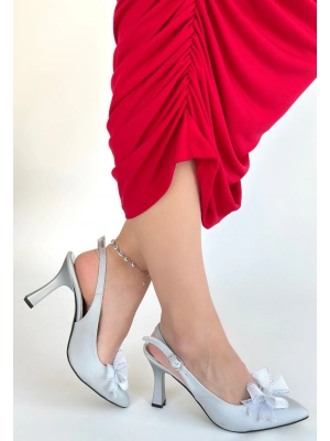 Mewi Gümüş Saten Topuklu Ayakkabı