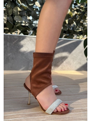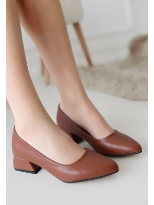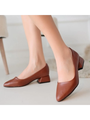 Desniy Taba Cilt Topuklu Ayakkabı - Bamido