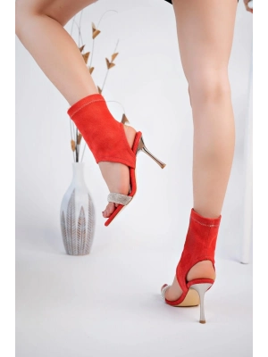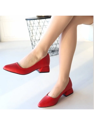 Desniy Kırmızı Cilt Topuklu Ayakkabı - Bamido