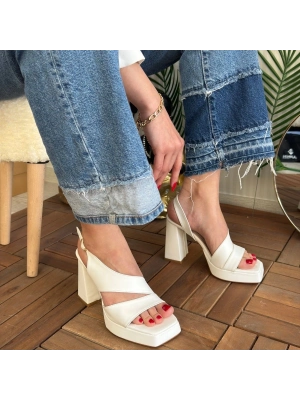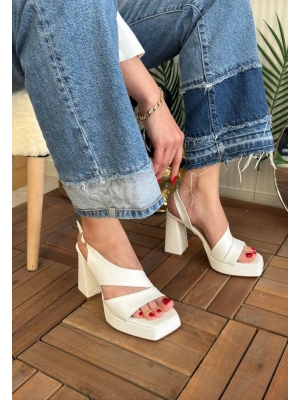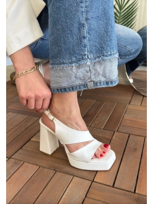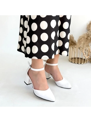 Mulen Beyaz Cilt Topuklu Ayakkabı - Bamido