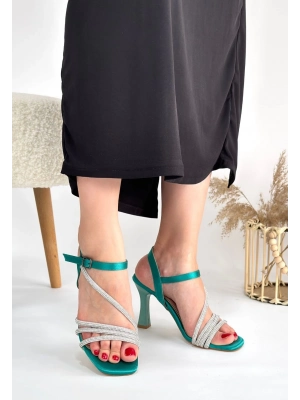 Gloria Yeşil Saten Topuklu Ayakkabı - Bamido