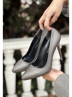Hillar Platin Saten Stiletto Ayakkabı - Bamido