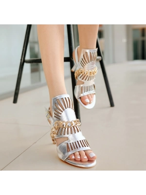 Lidya Gümüş Cilt Topuklu Ayakkabı - Bamido