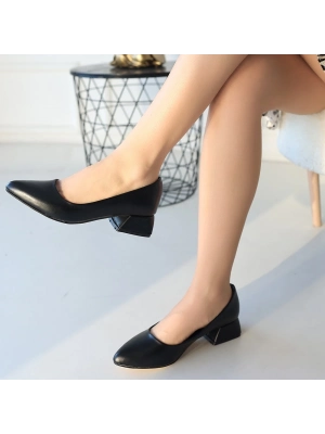 Pety Siyah Cilt Topuklu Ayakkabı - Bamido
