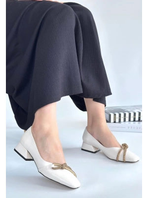 Year Beyaz Cilt Topuklu Ayakkabı - Bamido