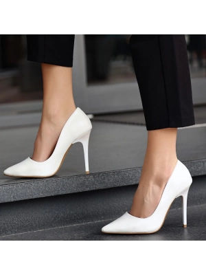 Hillar Beyaz Cilt Stiletto Ayakkabı - Bamido