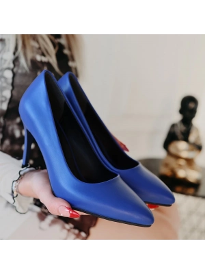 Jilya Mavi Cilt Stiletto Ayakkabı - Bamido