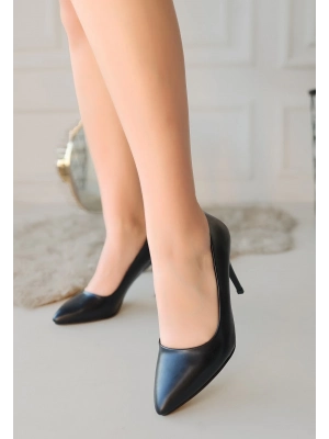 Jilya Siyah Cilt Stiletto Ayakkabı - Bamido