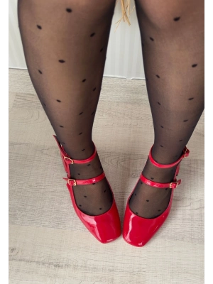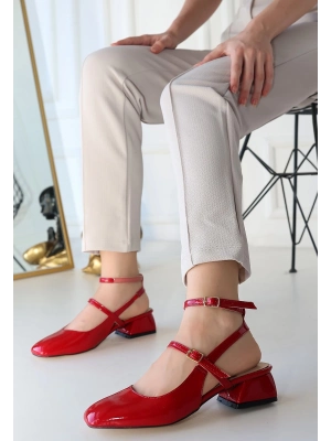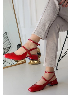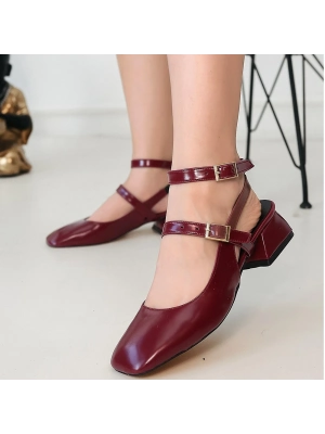 Karmi Kırmızı Rugan Topuklu Kemerli Ayakkabı - Bamido