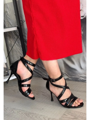 Yulia Siyah Rugan Topuklu Ayakkabı - Bamido