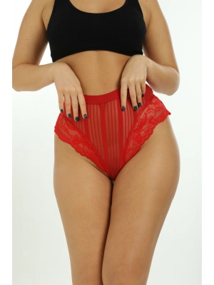 Kırmızı Kadın Çizgili Külot Veronica-k1009