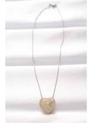 Bamido 316l Çelik Çift Renk Zirkon Taşlı Kalp Kolye - Lisinya