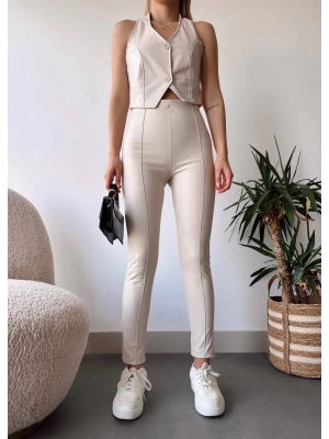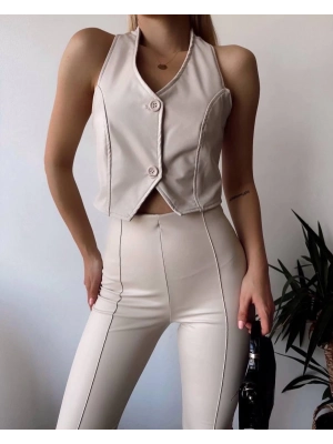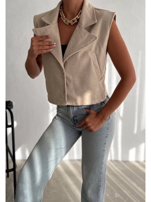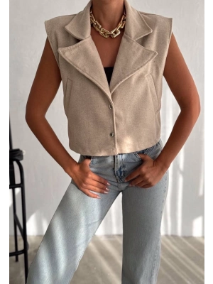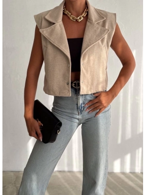 Krep Kumaş Düğmeli Yelek Bej S3395
